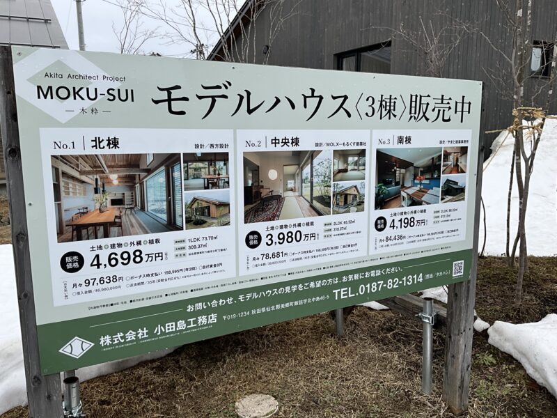 後ろ髪をひかれながら次に向かったのは、小田島工務店さんの3棟のモデルハウス『木粋(MOKU-SUI』 。