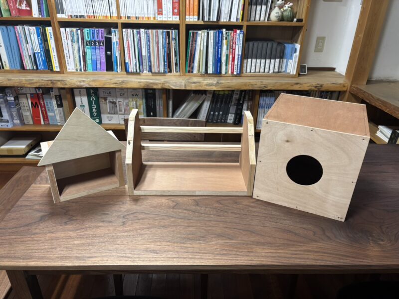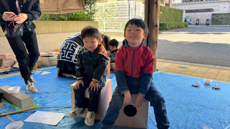 例年は木のイスの製作のみでしたが、今年は、サーカス小屋、本だな、カホンの3種類から選べるようにしました。