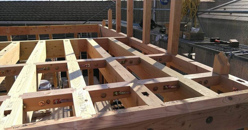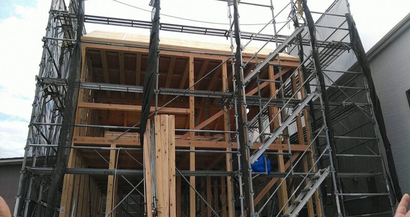建て方とは、いわば家の骨(柱や梁・桁など)を組み上げていく作業です。