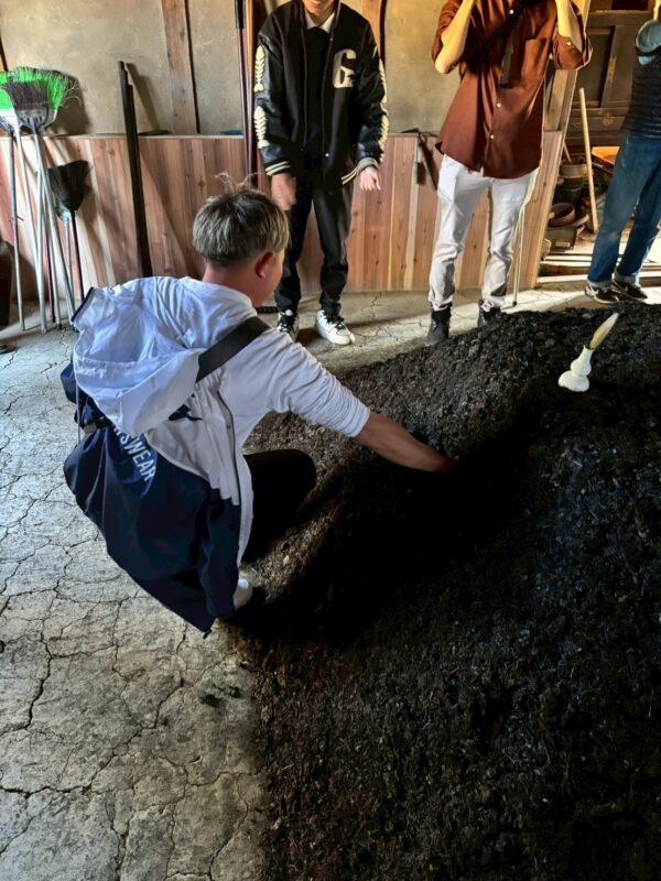 ねどこに敷き詰めて水をかけ混ぜて寝かすという作業を、週に1回、トータル20回行います。