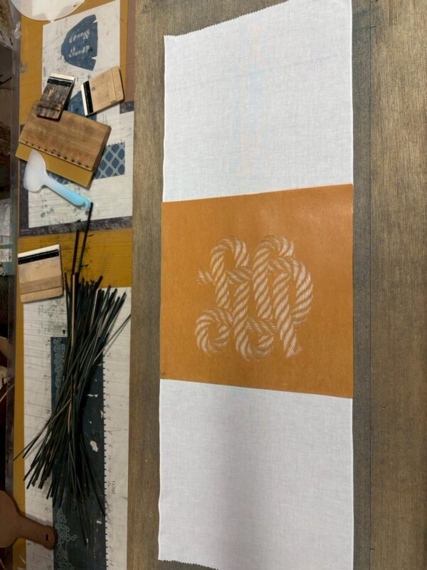 まず、てぬぐいに自分の好きな形の版を置きます。