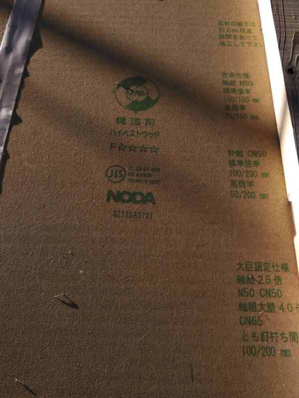 構造合板は、構造計算されたピッチで釘を打ちます。