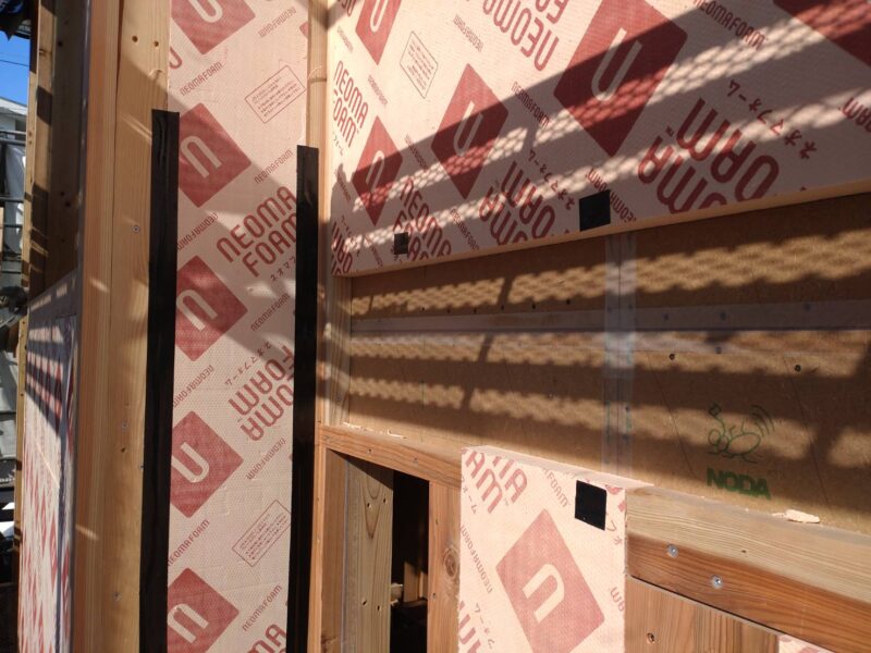 ネオマフォームの45mmを張り付けて、気密テープもばっちりです。