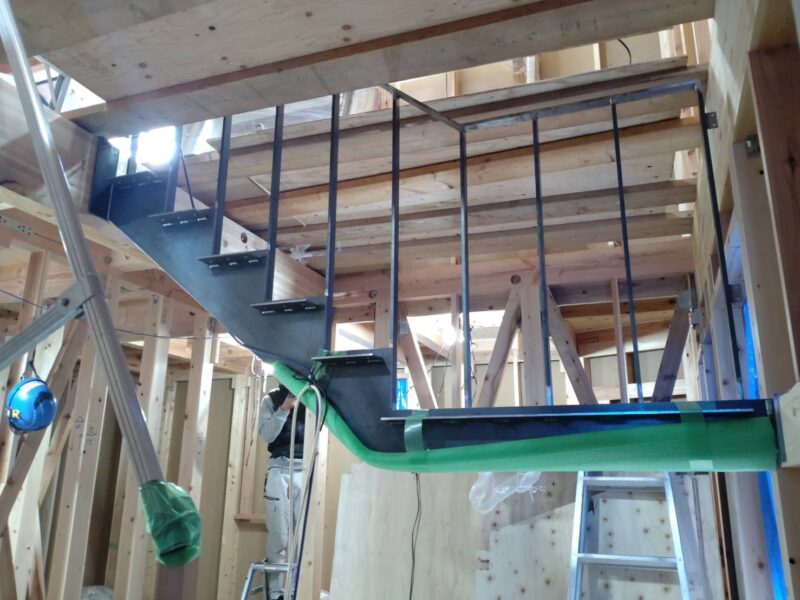 事前に設計をし、作製をお願いして上棟時に重機で吊り上げます。合理的ですね。
