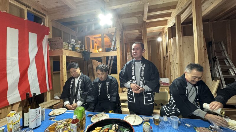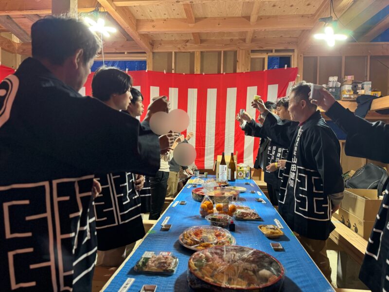上棟式も行い、今回はお施主様のご厚意で直会も開いていただきました。