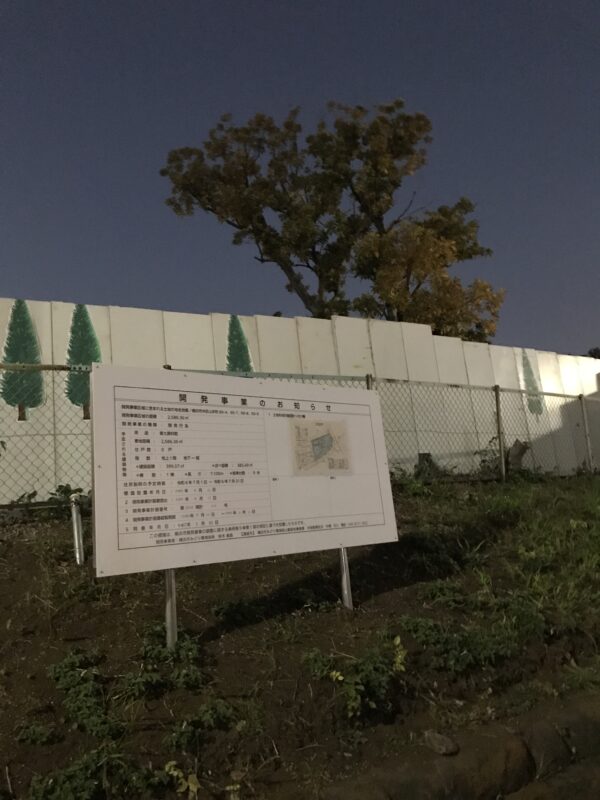 写真は横浜市某所の「開発事業のお知らせ」看板です。