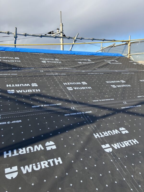 先日、弊社で採用している屋根一体型太陽光パネルを施工する前に、軒に対してまっすぐ取り付けるために出した墨の確認をしました。