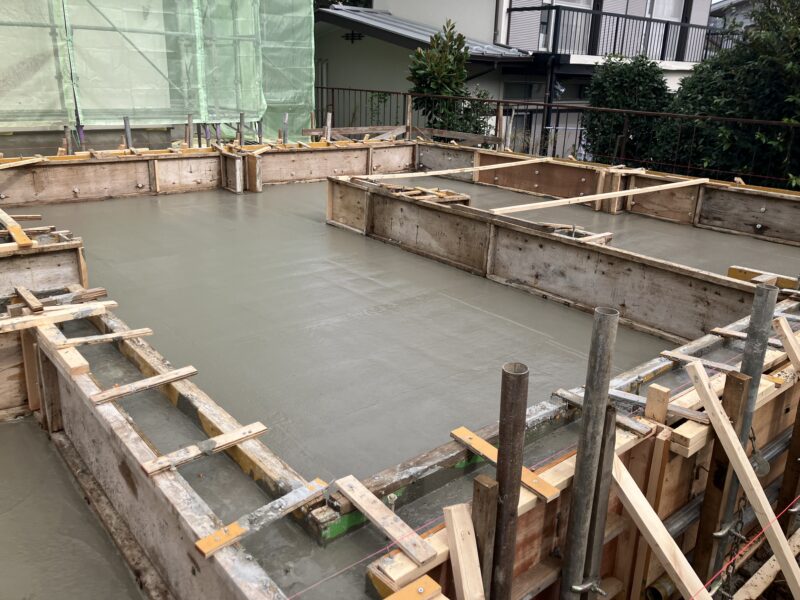 この基礎の上に、土台、柱が来て、家がたっていきます。