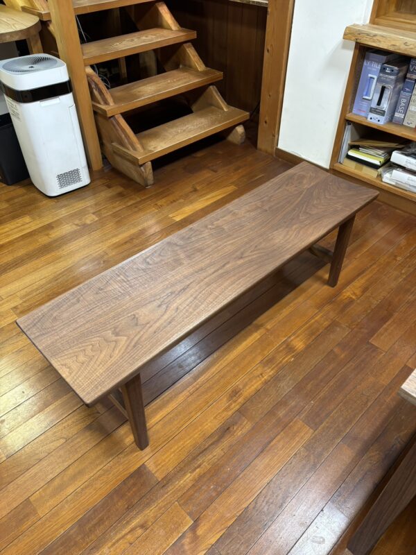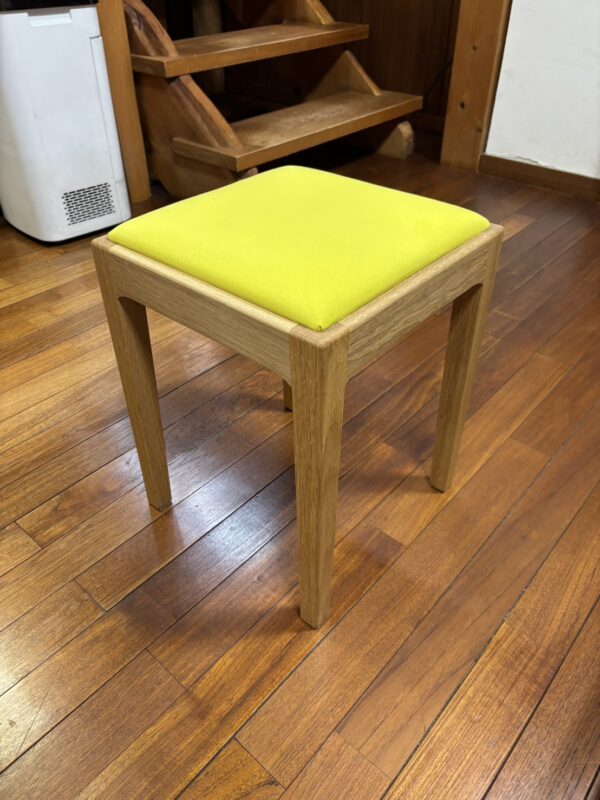 他にも、同じウォールナットでできたベンチと、黄色の座面がポップでかわいらしいスツールを購入しました。