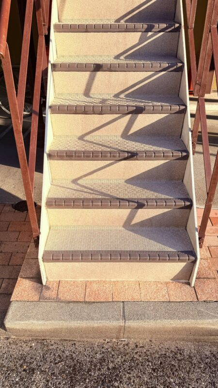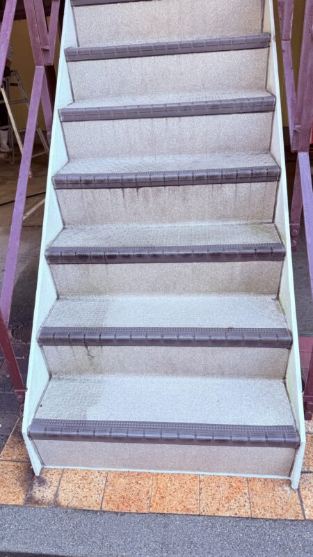 階段や壁、床のレンガ敷の部分を高圧洗浄機にて清掃し汚れを吹き飛ばし綺麗にしました。