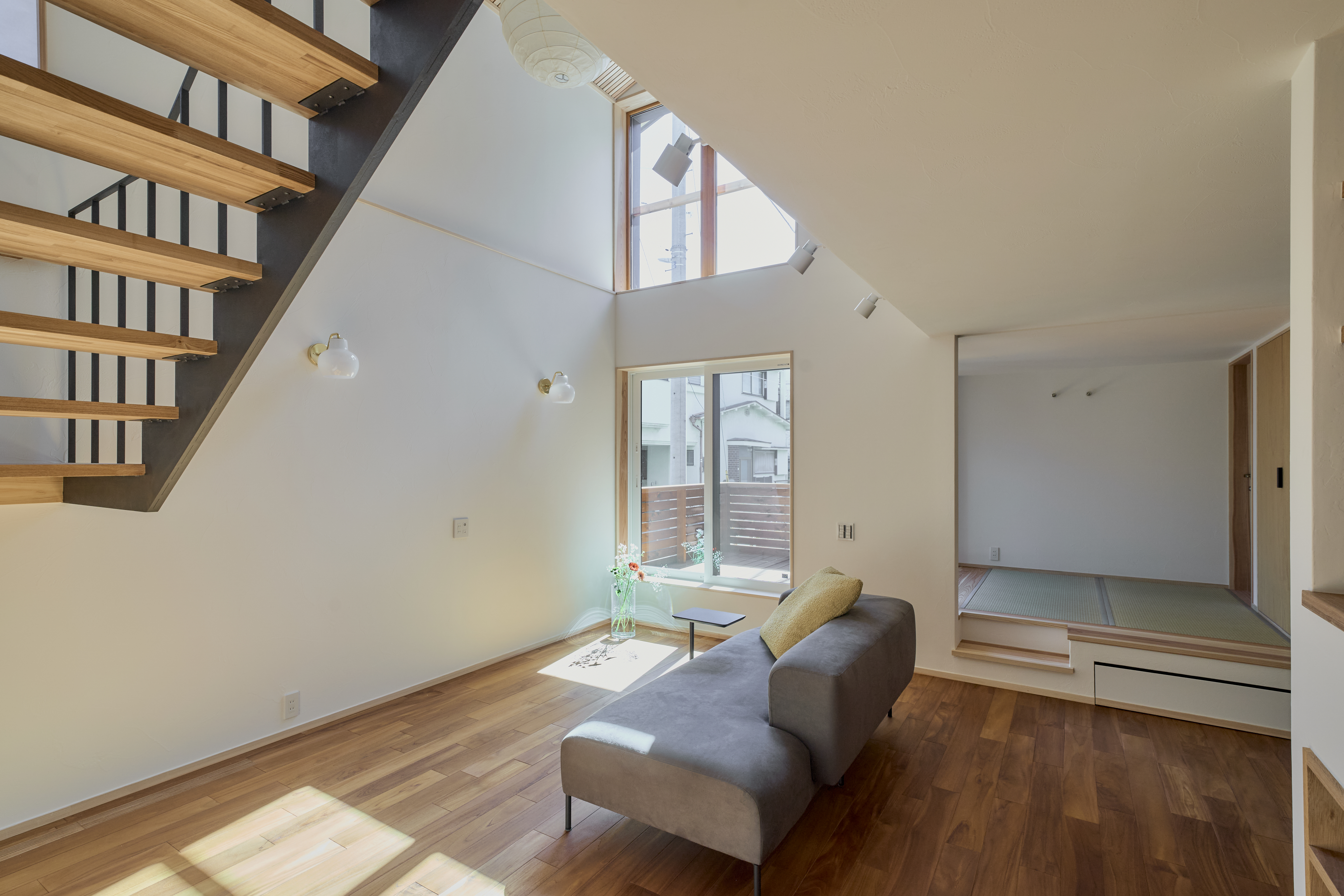 八王子市の一角に、ぱっと花が咲いたような明るい家ができました。