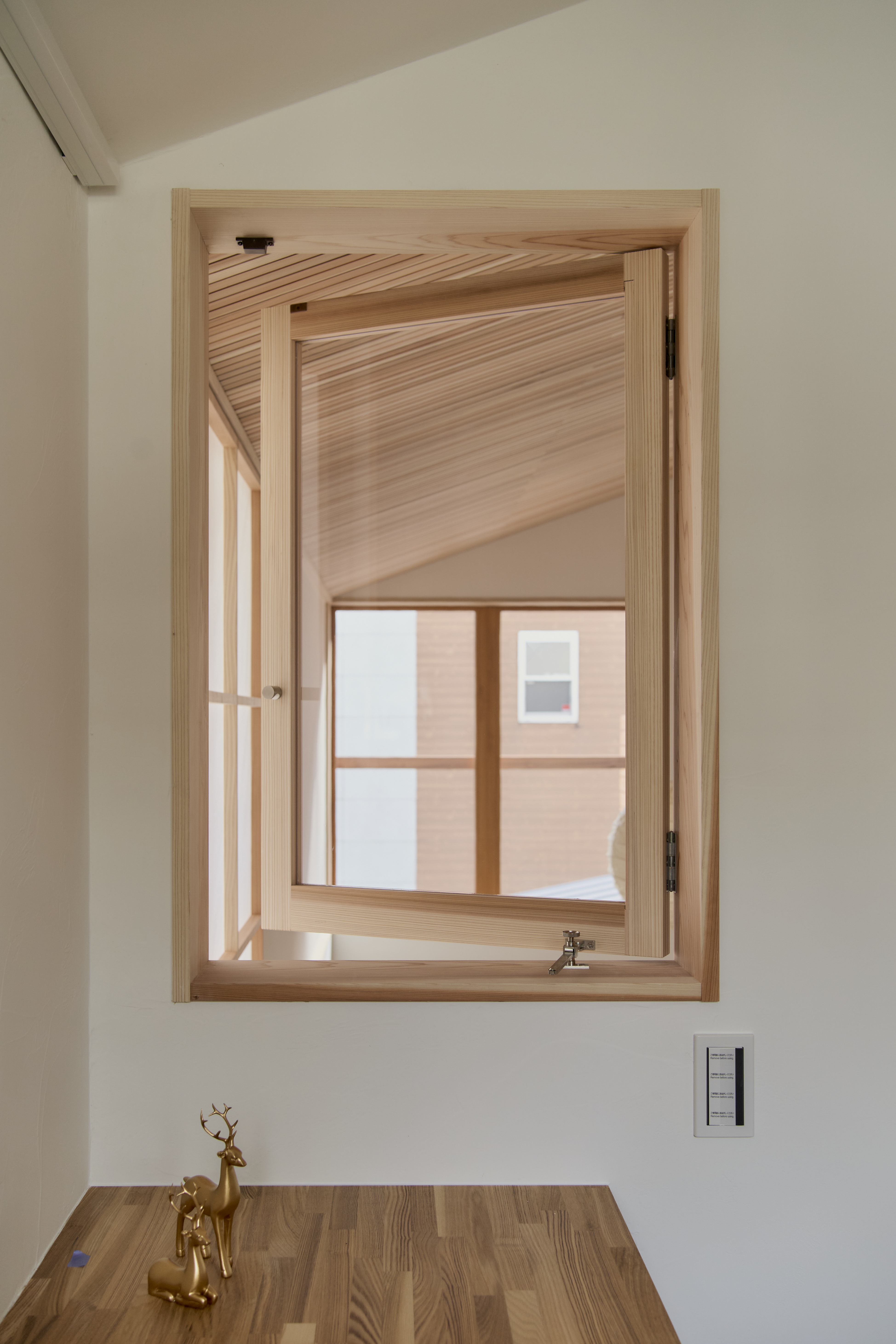 家の中に光をたっぷりと取り込みながらも、道路からの視線は遮る、採光とプライバシーの両立を目指した設計です。